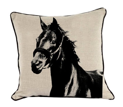 Room Service Natural & Neutral Collection Horse Pillow, 18 x 18-inch, Oatmeal Linen/Black