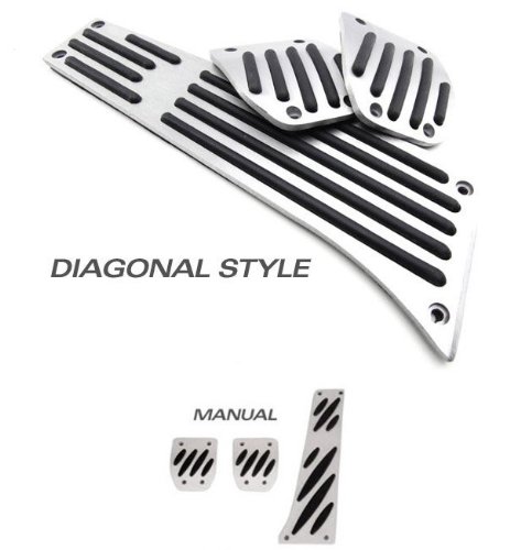 Our pedals have a sporty feel, aggressive look and greatly complement your vehicle's interior. These pedals are made from 1/8" cast aluminum enhanced with a spectacular gloss finish over a brushed surface. Along with a tough rubber backing, which penetrates through slots in the aluminum for excellent grip, these pedal look great and are made to last. Available for manual, automatic and SMG/DCT. Transmissions, and with optional foot rest. Sets are sold with all pedals and installation screws/nuts/bolts/washers required for each individual kit. Note that some of the newer vehicles, where the part unmber is specifically stated in the part description as -with square footrest-will be shipped with a square footrest which was not specifically designed for your vehicle. This may slightly overhang, or may not completely cover the footrest area. This, however, will not be noticable after installation and will still look great. For F10-Automatic Transmission. Without Footrest. Diagonal Grip Style.