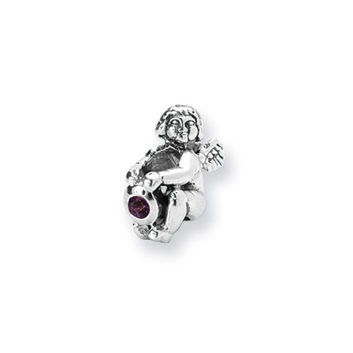 Celebrate the day you were born or that of a loved one with a birthstone charm and attach sentimental meaning to your jewelry. This sterling silver, 3-dimensioal design enhanced by an oxidized finish to increase the definition features a purple cubic zirconia gem for February birthdays. All of our angel charms measures roughly 13 x 17mm with a 4mm center that is interchangeable as well as compatible with Reflections, Expression, Kera, SilveRado, Pandora and other 3mm bracelets and necklaces.